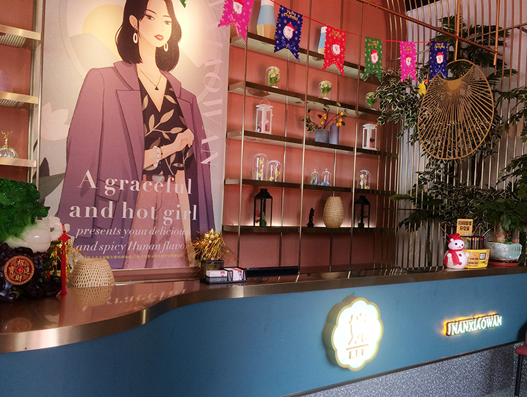 品類可以雷同,但品牌都有自己的特性。品深餐飲策劃設(shè)計在2018年服務(wù)一家湘菜餐廳-南小婉。我們一開始就圍繞著南小婉這種偏女性的特點,把品牌具象成大家極為熟悉的湖南妹子,突破了傳統(tǒng)湘菜那種鄉(xiāng)村、原始、自然、大紅,刻意土里土氣的大眾風(fēng)格,整個格調(diào)更加精致,輕奢,藝術(shù)氣息,再匹配詳細(xì)的平面形象、物料應(yīng)用設(shè)計,整個空間個性特色,成了深圳湘菜餐廳中顏值高,生意好的代表性品牌。