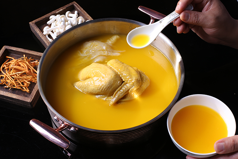 “喝著啤酒泡枸杞”“熬最晚的夜,敷最貴的面膜”……這些看似調侃的語氣,實則透露著時下全民對健康生活方式的追求。所以,廣式火鍋要做到既滿足火鍋情結,還帶有養生屬性,在這方面豬肚雞特點非常契合。傳統的廣東豬肚雞都要輔以藥材入湯,一鍋濃郁的白湯營養滋補,這是養生屬性;同時,豬肚雞又是廣式火鍋中唯一能加“辣”的火鍋,這里的“辣”指的是胡椒,喝湯吃肉后還用廣州特色食材作涮菜,最后主食再來一份燒臘,可謂火鍋的完美配置。