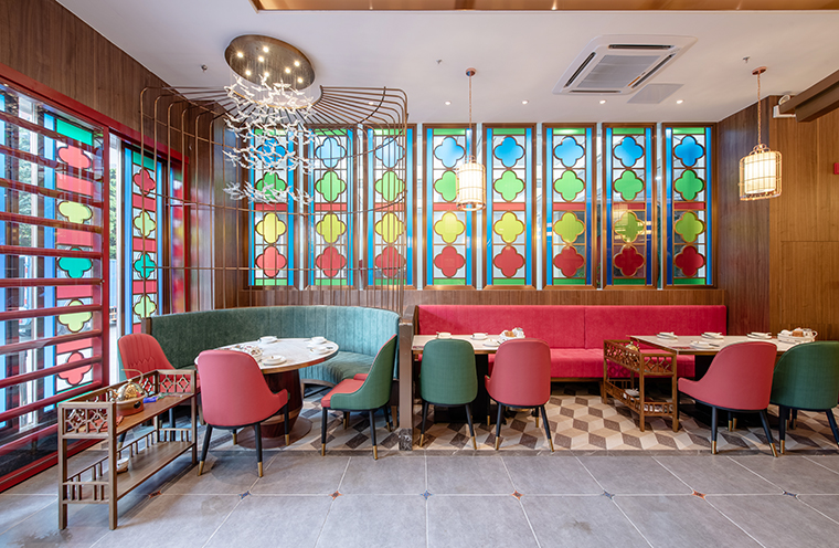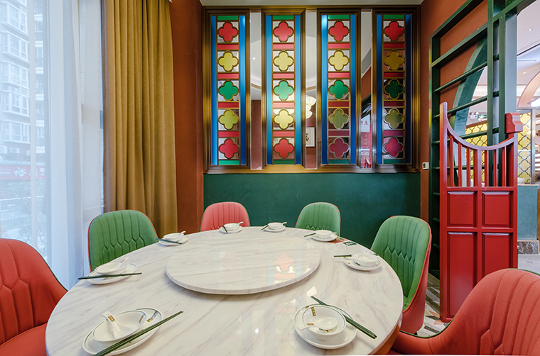 中,我們將廣式花窗大面積使用在正面形象,進(jìn)門口,包房隔斷等,形成了強(qiáng)烈的視覺沖擊力,具有鮮明的品牌感。