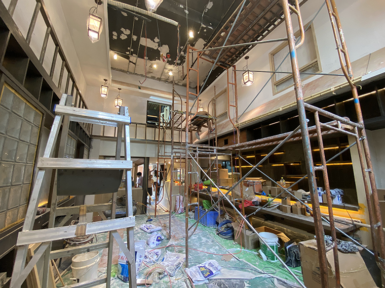 玉椿燒鳥居酒屋首店位于深圳的餐飲網(wǎng)紅高地——車公廟十畝地正對(duì)面。門店之前是一家中餐的后廚的全部空間及部分包間,其中一半的面積屬于上一家餐廳自己搭建的二層。空間結(jié)構(gòu)非常復(fù)雜,地面高地不平,尤其是搭建部分的1層,2層實(shí)際高度不到2.5米,心理感受很逼窄,這個(gè)場(chǎng)地極為考驗(yàn)品深項(xiàng)目團(tuán)隊(duì)中空間設(shè)計(jì)師的功力水平。