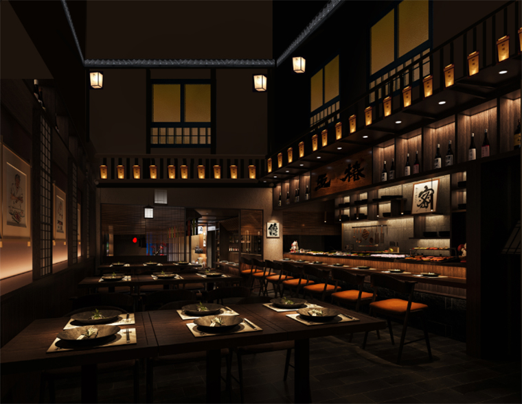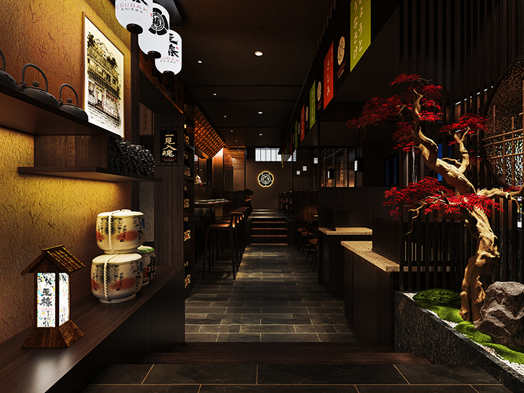 日本料理燒鳥居酒屋餐廳平面布局設(shè)計(jì),日本料理空間裝飾效果圖設(shè)計(jì),燒鳥居酒屋空間施工圖設(shè)計(jì),居酒屋空間軟裝陳列設(shè)計(jì),品牌文化植入空間策劃設(shè)計(jì)