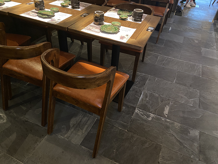4、二樓6個(gè)包間,沿著精致的實(shí)木踏步樓梯上到二樓,青石板樓道,白色鵝卵石間隔,墻面用實(shí)木炭黑色的護(hù)墻板包裹裝飾,吊頂?shù)脑举|(zhì)感,典型的日式家居風(fēng)格。當(dāng)很多女性消費(fèi)者穿著和服,踏著木屐,捧著玉椿美食,依靠在移門上,端坐在臺(tái)階前自拍發(fā)圈分享時(shí),玉椿品牌很快就廣為人知了。