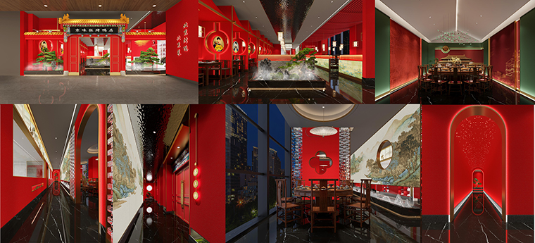 1、本項目為京味張東莞大朗碧桂園里悅里店,總面積約829平方米。用中國紅強化品牌內含的北京皇城文化,令人印象鮮明;